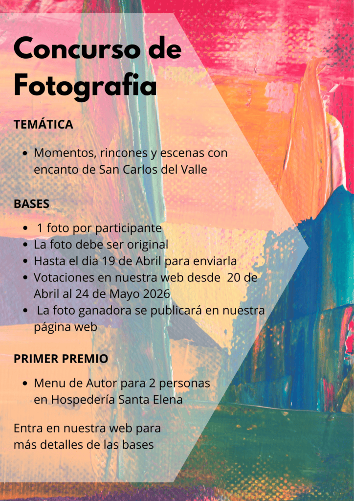 Además, al centrar la temática en San Carlos del Valle y el campo cercano, este concurso se convierte también en una forma de mirar con más atención nuestro entorno, valorar su belleza cotidiana y destacar la singularidad de un lugar con mucho encanto. Queremos que las imágenes participantes sirvan no solo para competir, sino también para mostrar la riqueza visual de nuestro pueblo y del paisaje que lo rodea.